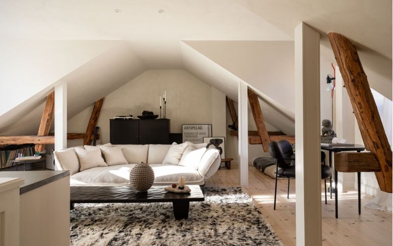 Astuessasi avoimen, tilavan ja valoisan pienen kattohuoneiston maailmaan tunnet heti, kuinka jokainen elementti ja yksityiskohta on harkiten sijoitettu luomaan yhtenäinen ja harmoninen elinympäristö, jossa on vahva persoonallisuus. Tämä asunto on esimerkki siitä, kuinka rajatusta tilasta voidaan tehdä monikäyttöinen ja tyylikäs asunto, jossa jokainen nurkka ja jokainen elementti on huolellisesti harkittu.