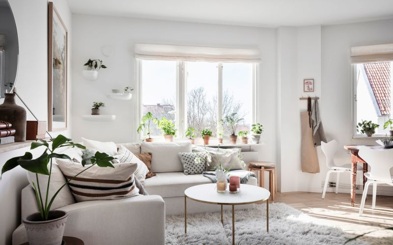 Väreillä on erityinen kyky vaikuttaa huoneen tunnelmaan, ja niitä voidaan käyttää ilmaisemaan koko tunnespektri. Romanttiseen olohuoneeseen kannattaa valita vaaleat värit, jotka luovat rauhallisen ja valoisan tunnelman. Valkoinen, yksi klassisista valinnoista romanttiseen sisustukseen, toimii täydellisesti neutraalina taustana. Se voidaan yhdistää pastellisävyihin, jotka lisäävät arkuutta ja pehmeyttä huoneeseen. Voit myös valita useita erilaisia vaaleita sävyjä, kuten kerma, vaaleanharmaa, vaaleanpunainen tai vaalea beige, jotka harmonisoivat ja täydentävät toisiaan luoden kevyen ja tasapainoisen tunteen. Tämä yhdistelmä pitää huoneen ilmavana ja kirkkaana, kun taas valkoinen väri tarjoaa upean taustan koristeille, kuten verhoille, tyynyille tai matoille.